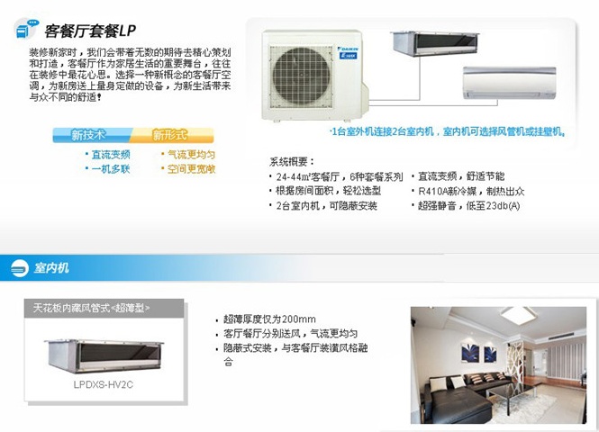 1臺(tái)室外機(jī)連接2臺(tái)室內(nèi)機(jī),室內(nèi)機(jī)可選擇風(fēng)管式室內(nèi)機(jī)或掛壁式室內(nèi)機(jī),靈活對(duì)應(yīng)